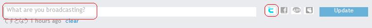 呟く内容を入力して、ついったーアイコンをクリックすると呟かれます。