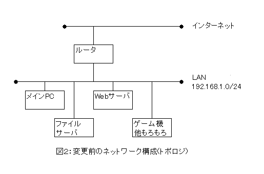 変更前のネットワークをトポロジ図(接続外略図)で表すとこんな感じ。