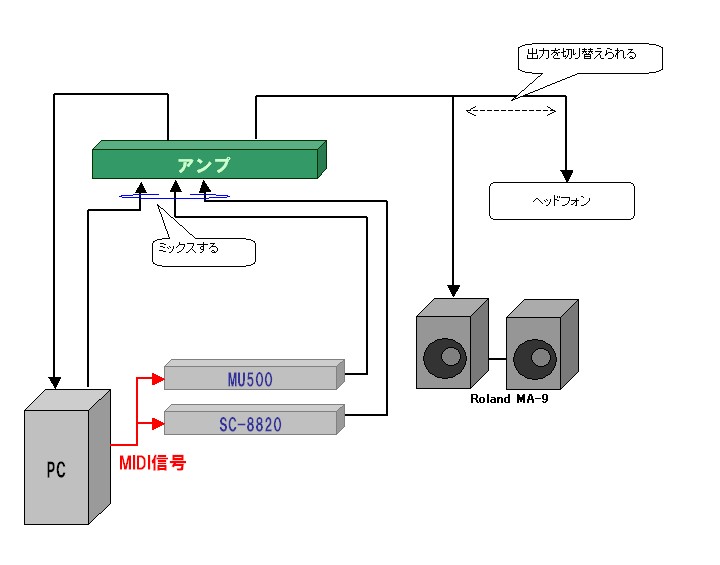 いまはMIDI音源のMU500の入力にMIDI音源のSC-8820を接続し、